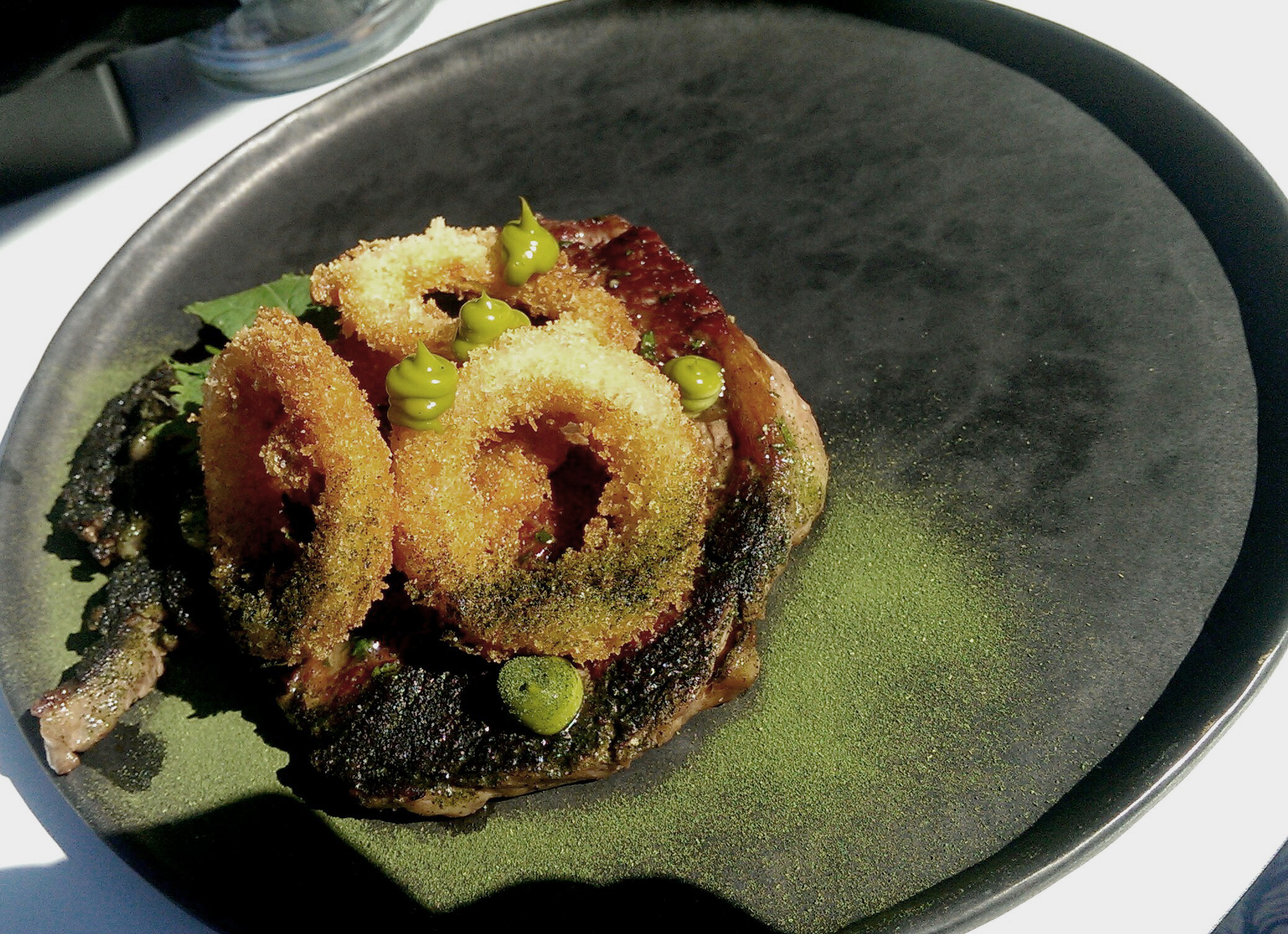 Мясо на косточке — не понравилось. Есть мясо с прожилками жира, а тут просто жилистое. Жилы аккуратно спрятали под луковыми кольцами и зеленым листиком. Может, отстала я от жизни, но не могу есть голое мясо без гарнира. 3 жирных кольца лука во фритюре, масло и некая зеленая пыль не в счет.