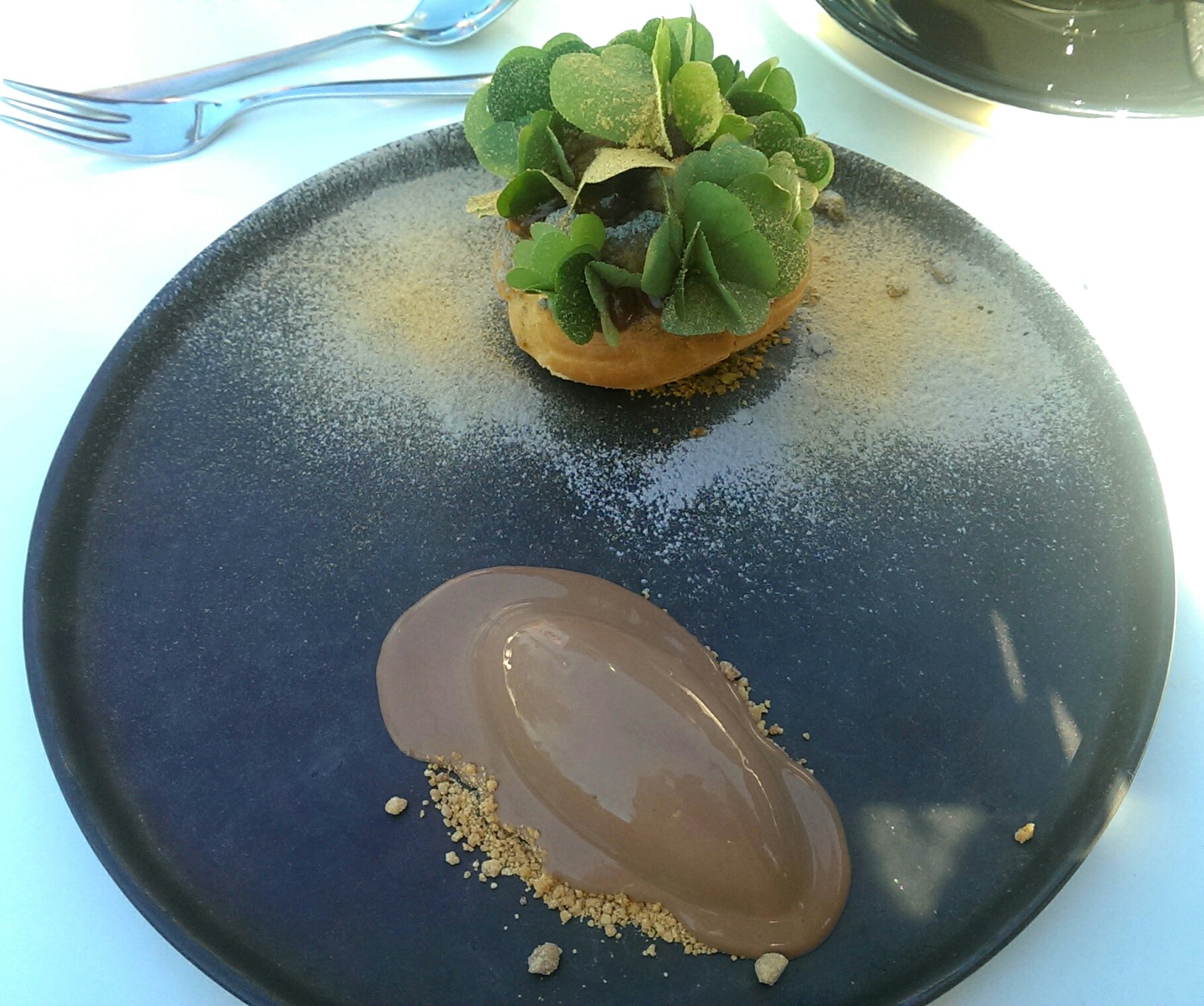 Really was looking forward to try éclair, but I didn’t expected that. Instead of éclair was small bread roll with drop of filling, hidden with some greens. Is is a fashion to dig all in a grass, I wonder. Chocolate ice-cream with crump of chanterelles — if only I knew. Mushrooms were just like crashed biscuits.
