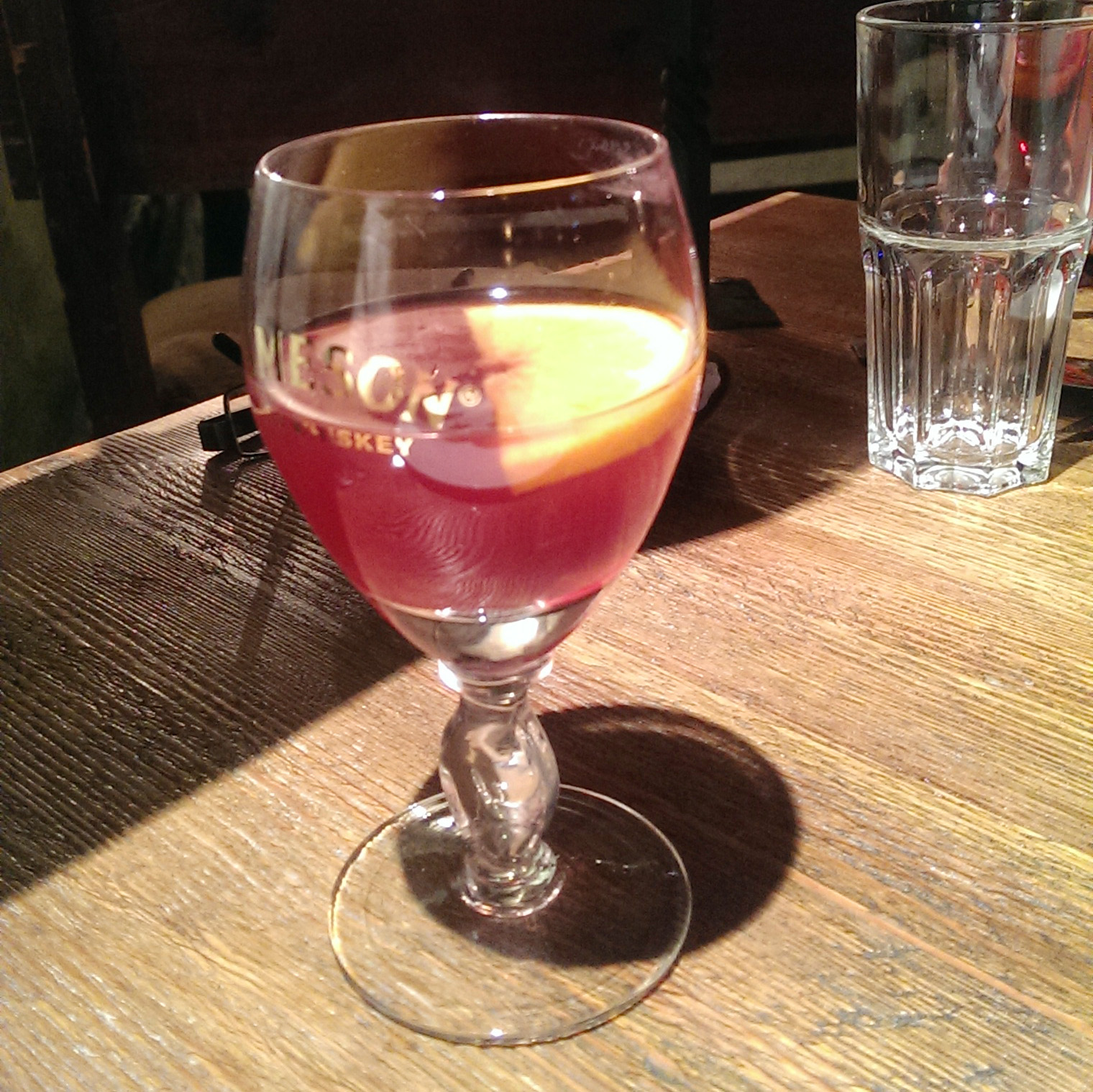 Из питья ограничилась лишь безалкогольным глинтвейном по-мушкетёрски. Сделан на базе настоящего сока или вина, судя по мутному остатку. Хорошо, но не отменно. Знаю, где делают лучше и продают круглый год — спрашивайте.