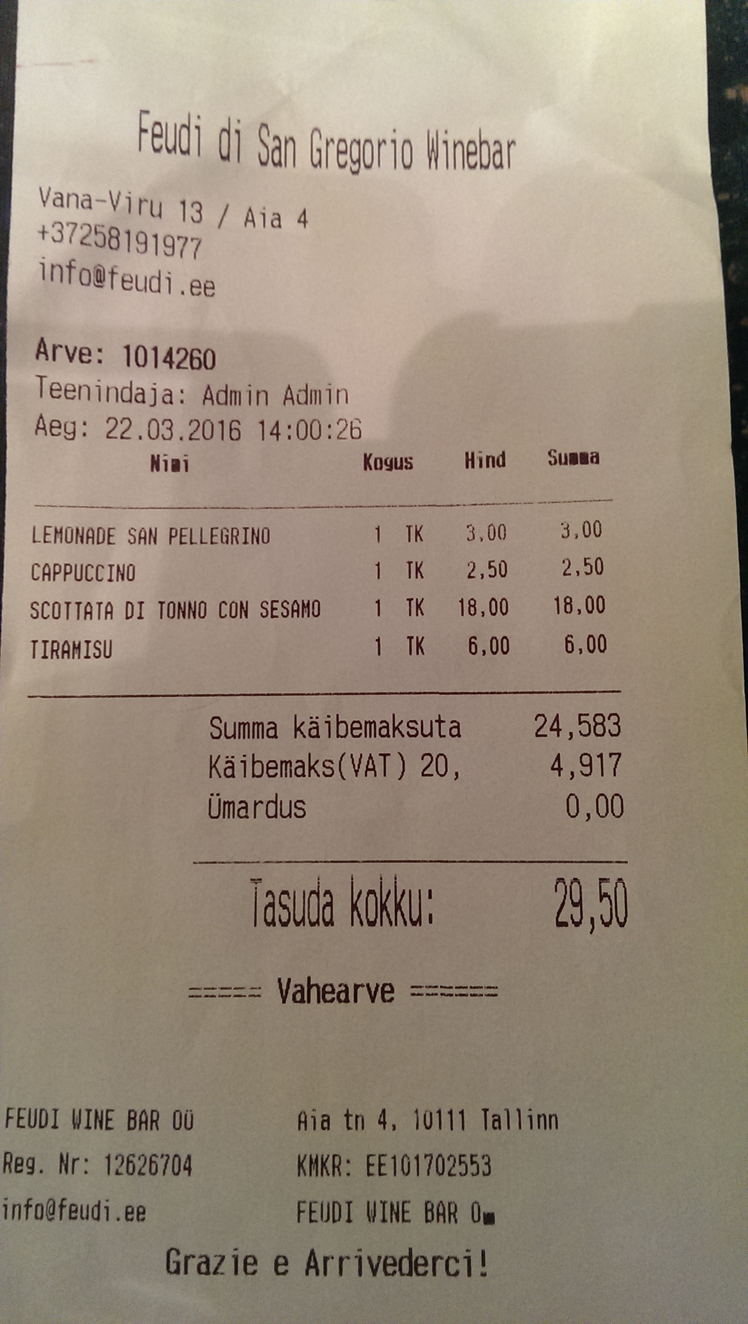 Who is in charge — that is welcoming the guests as well. By the way, it’s common in Italian restaurants. Here was the same: owner met me at the door with gentle smile and low murmur in English. Yes, he also speaks Estonian as well.