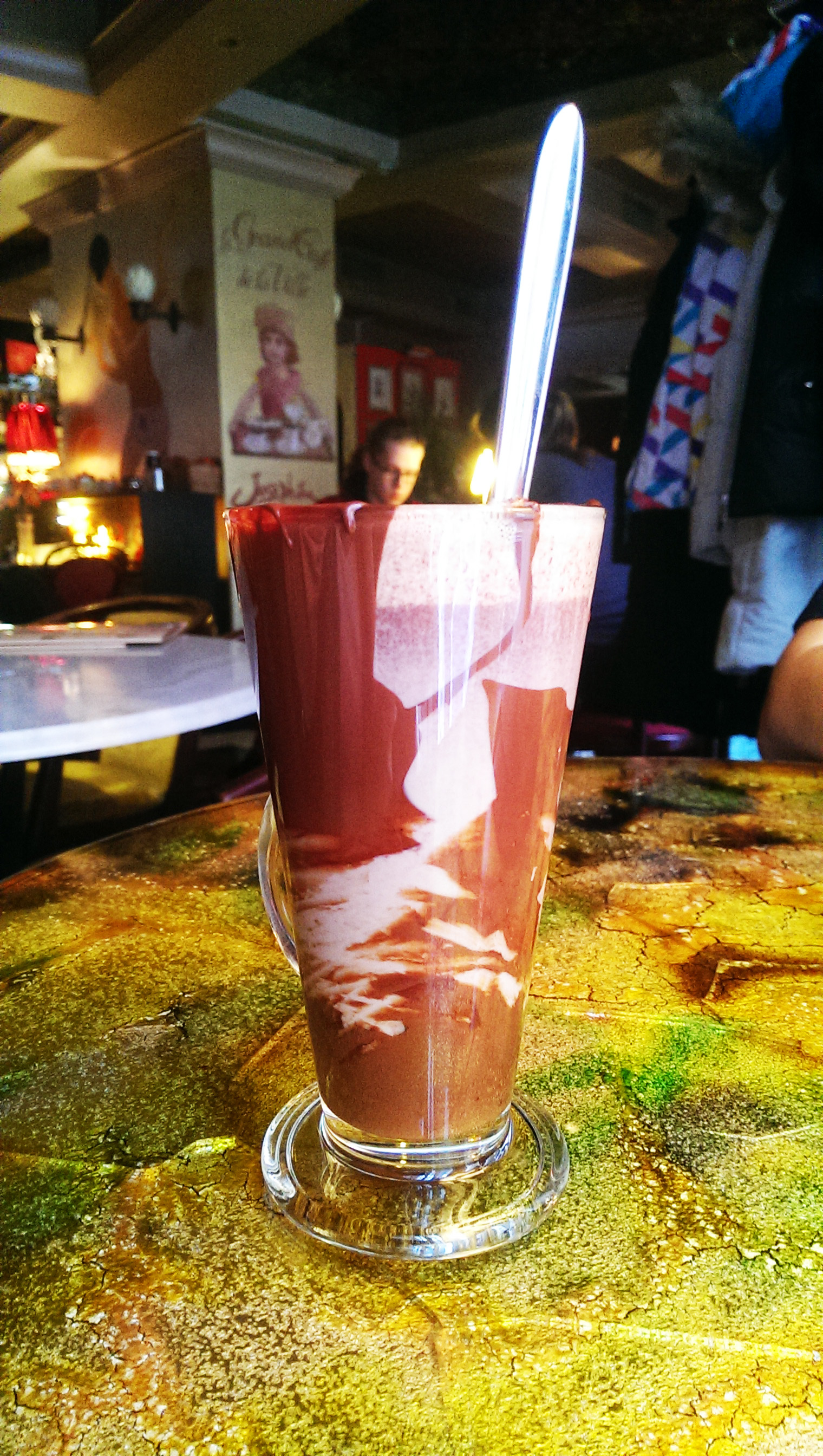Также одна из причин, что вытащит меня хоть в дождь сюда прийти — это шоколадный напиток с цукатами и имбирем. Класс! Кого не привожу попробовать — все в восторге! Есть ещё вариант с чили и изюмом и некий Карандаш Ван Гога. Советую попробовать все.