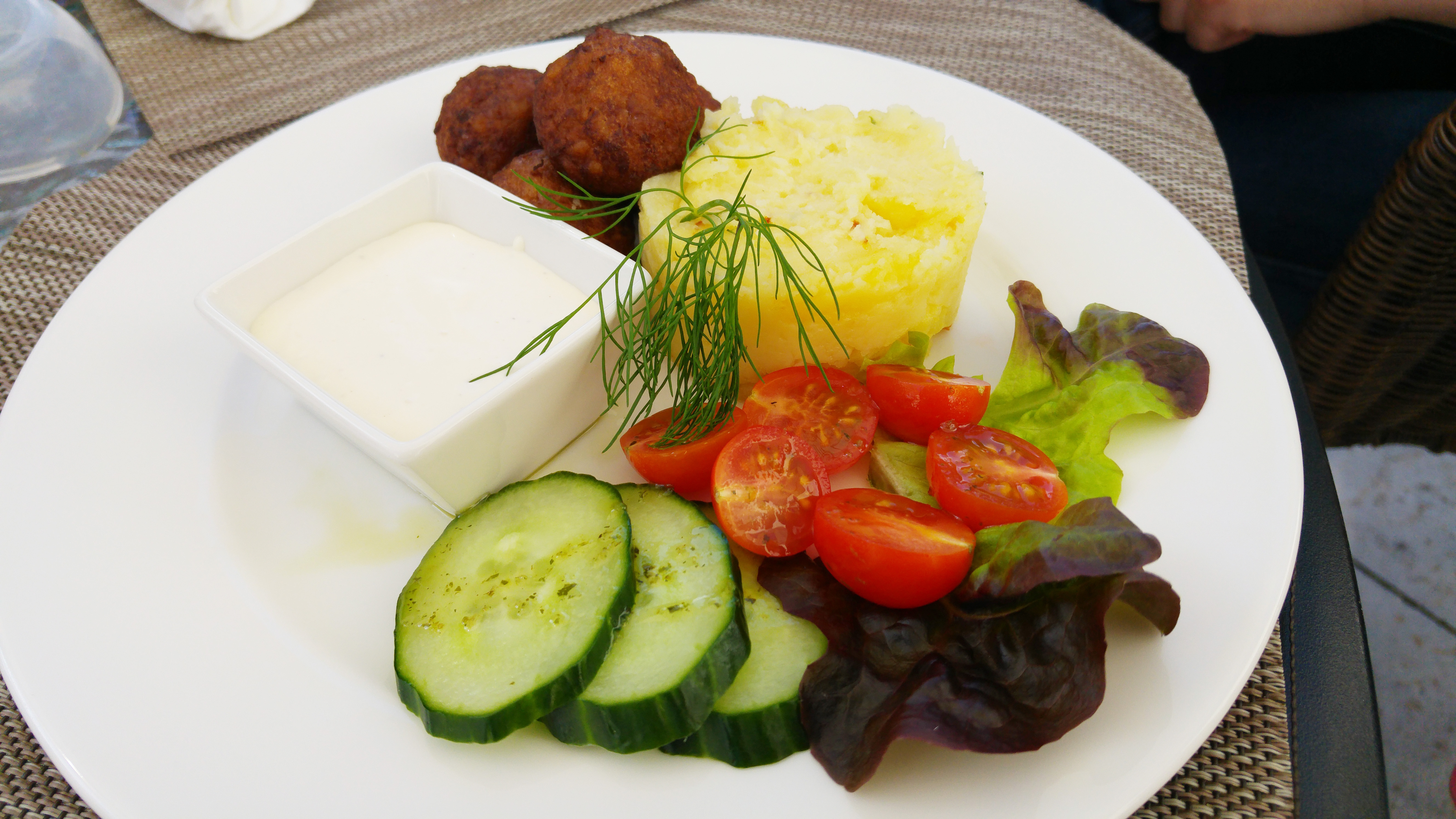 Only person who didn’t complain was my child, who ate whole plate of mashed potatoes with meatballs. Small mistake: in menu was written Sour Cream, but was brought mayonnaise. Mistake second in children’s menu: do not put so many seasoning on the vegetables. Then all is perfect both for babies and for strict parents.