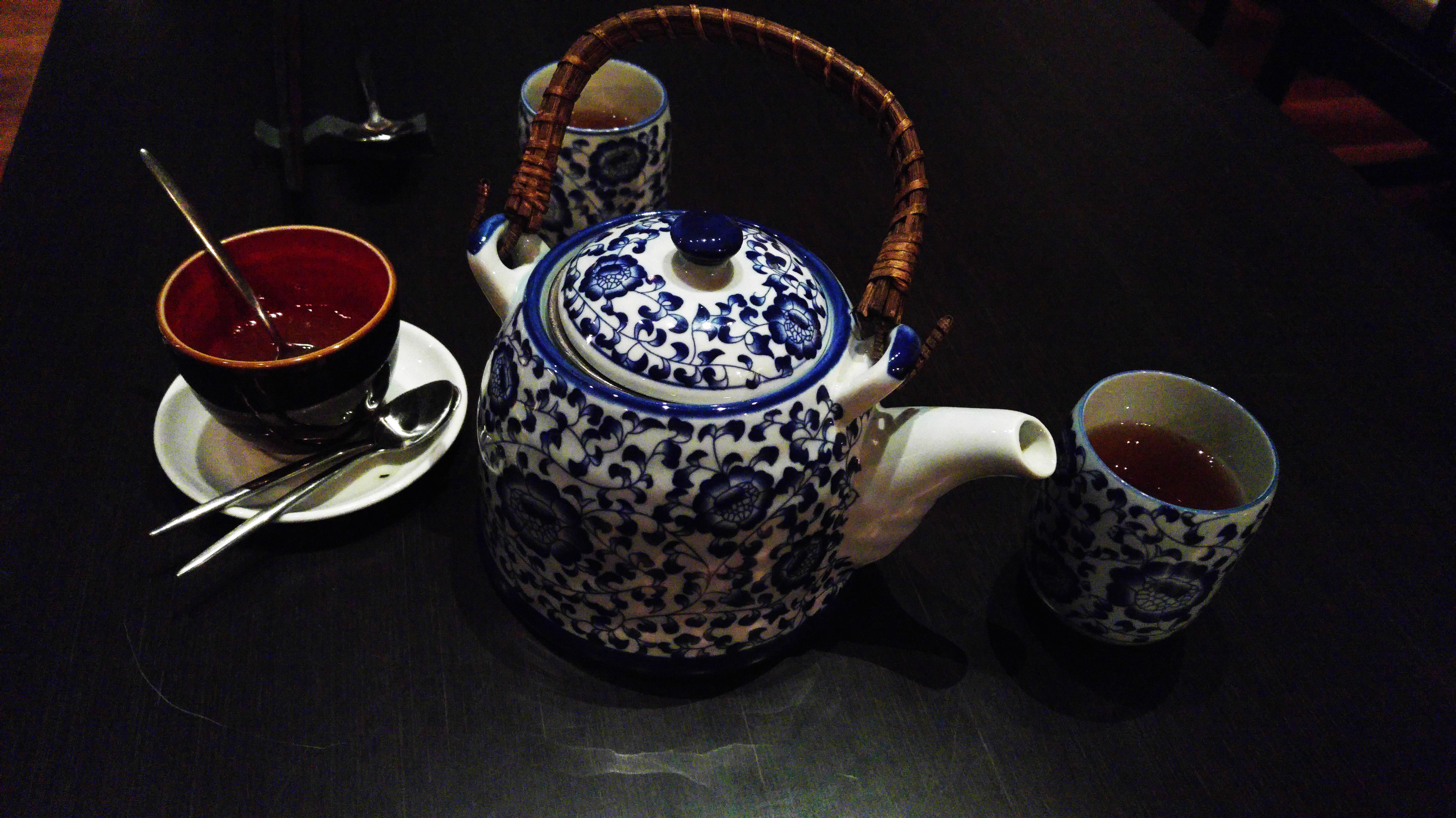 Под шоколадный десерт априори идет капучино. Здесь его подают отменным, с крепкой пеной, приятной горечью и даже кофе арт-ом. Заказанный ранее чайник Da Hong Pao разочаровал, но не вкусом самого чая, а его подачей. Chedi катастрофически не хватает настоящей чайной церемонии – это единственное пожелание с моей стороны.