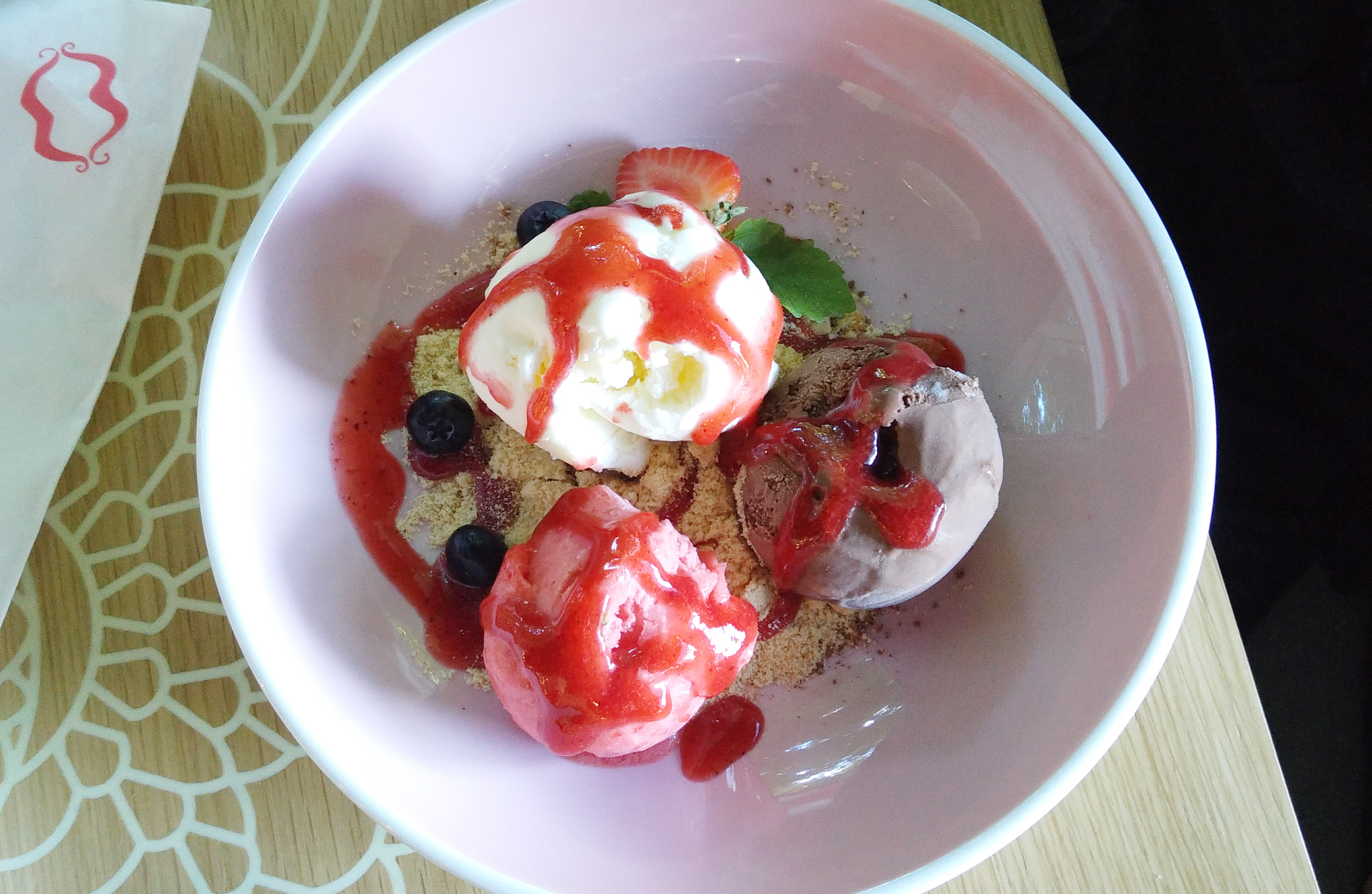 Tourists and locals should keep in mind that here is a self service at the cashier: you pay beforehand and balance to the table with cups on your own. At summer appears long queue from sweet-tooth visitors, rest time of the year is more calm and free from a noisy crowd. I’d offer to charge hotel guests on their room nr, then waiting time would shrink. Finally, personnel is pleasant and friendly.