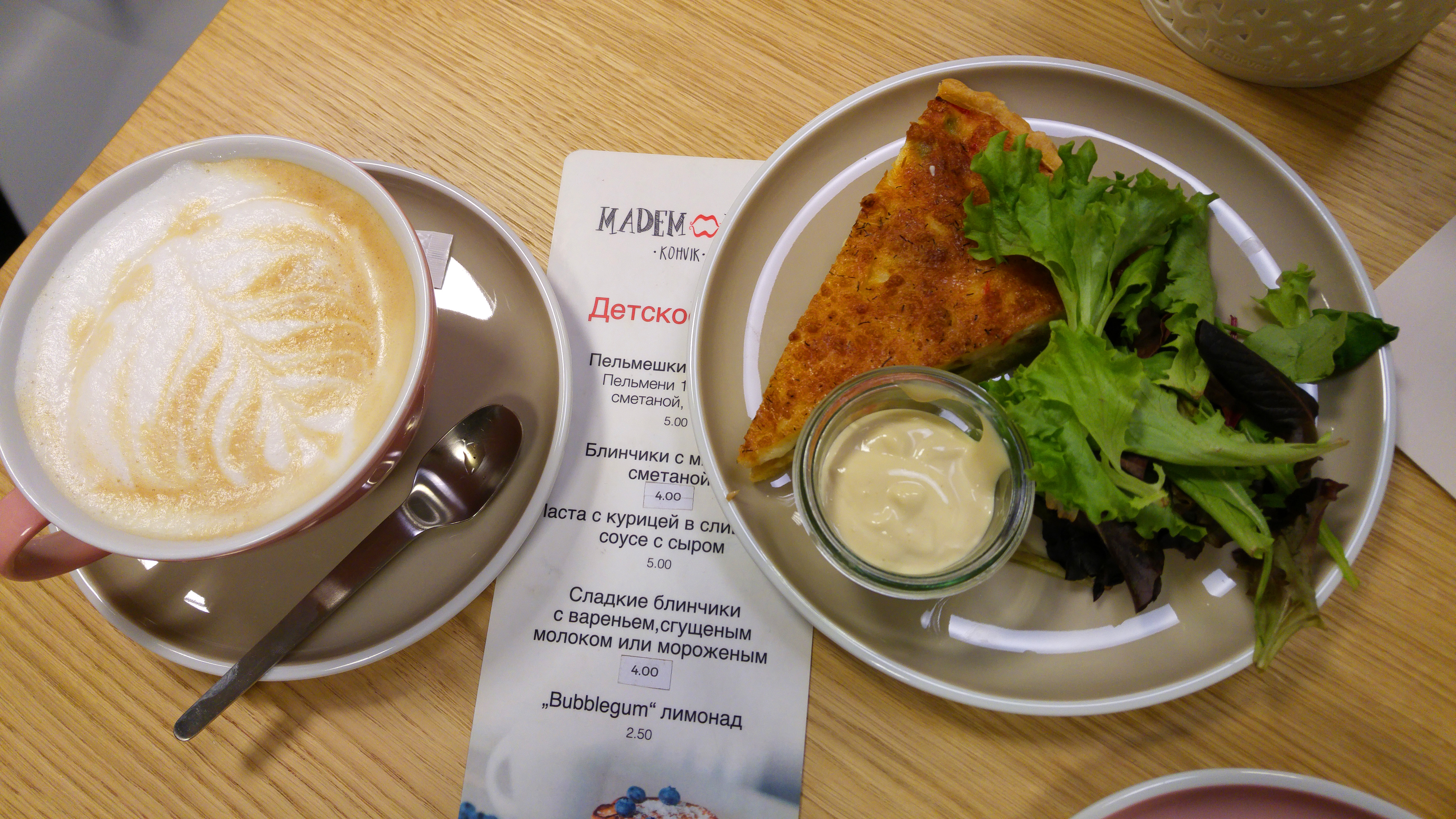 When all the Mademoiselle cafes started to appear like mushrooms after the first rain, I got excited. What if they make a good competition to Lyon, Reval, Carmen and other popular places? Yet, they are still so unpredictable and different. First, they doesn’t even look alike, so why they keep the same name. Secondly, they couldn’t surprise with a meal quality. Seems the only advantage is a positioning in city centre, at shopping malls and at the hotels.
