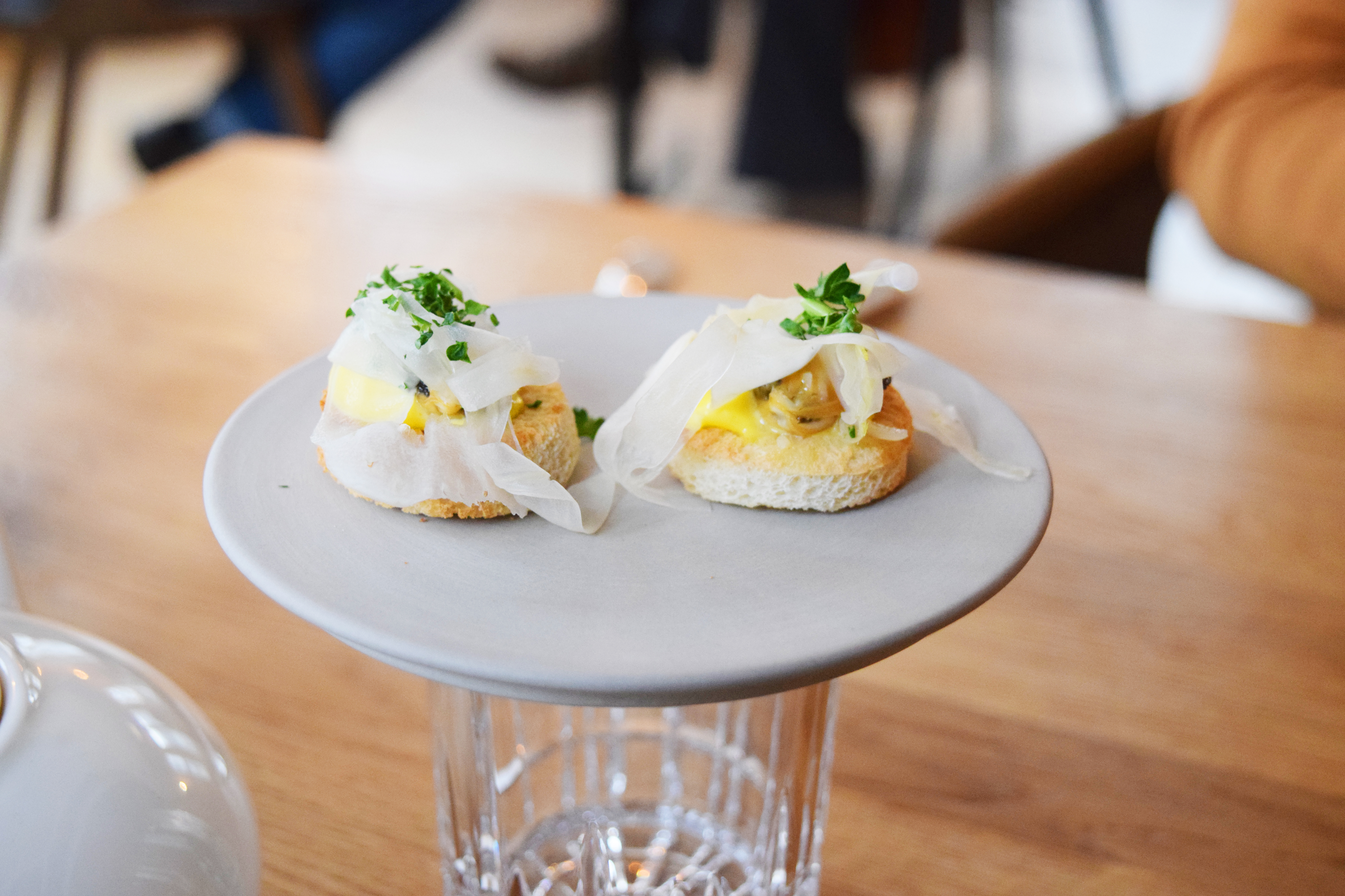 A bread basket arrives in time to satisfy the hunger, all handmade gluten passions. Those were dried rye bread with fruits – in my opinion, the best from whole assort. Those were also slices of white bread millet – tasty, but felt a bit dry. Finally, it was black bread with thyme – spongy, viscid, caramel or kvas flavoured. It’s served with two pots of whipped butter and acetic mayonnaise.