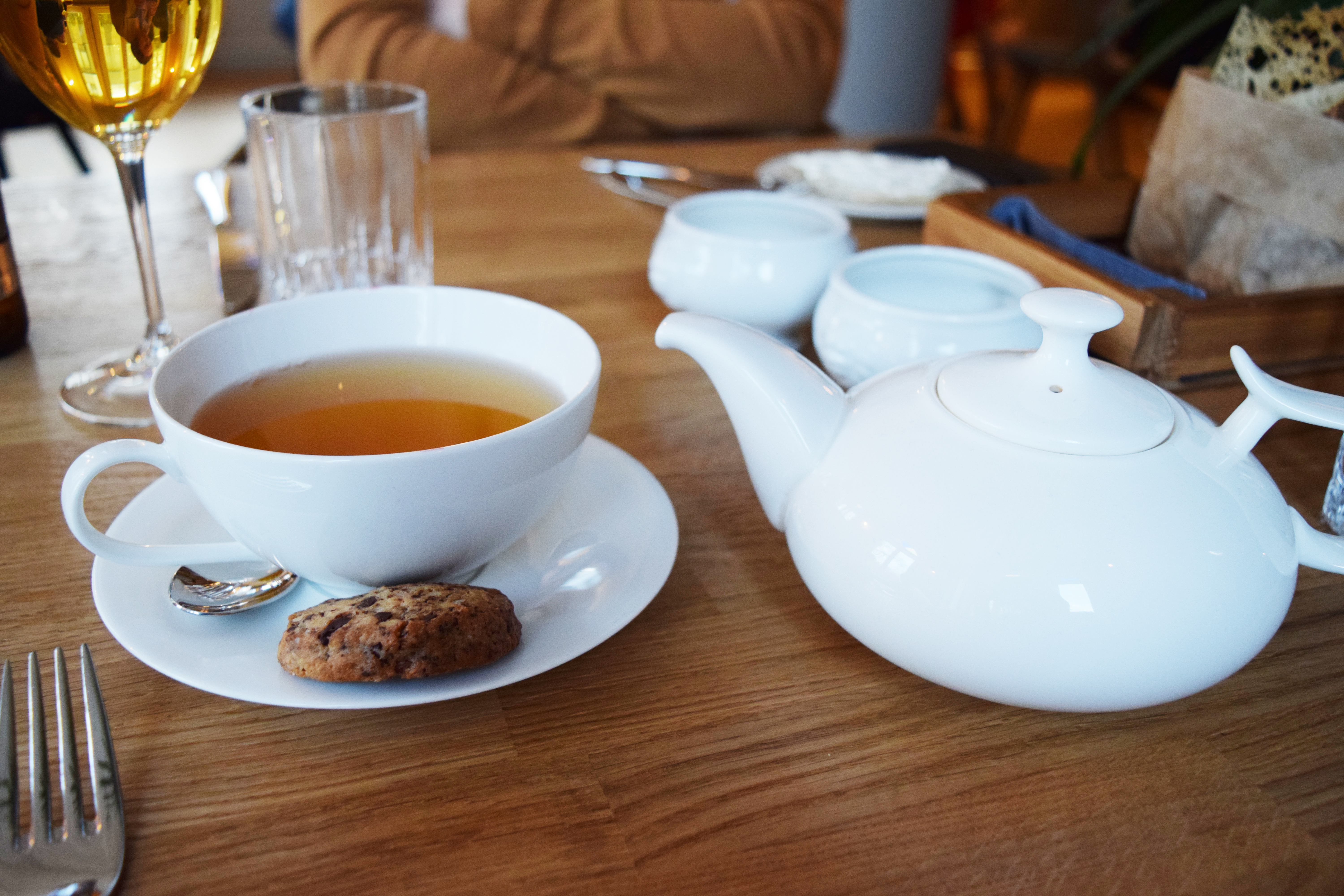 From drinks were ordered green tea pot, coffee latte and non-alcoholic beer Warsteiner. In addition to all hot drinks were given small chocolate chips cookies – easy to guess that they were handmade.