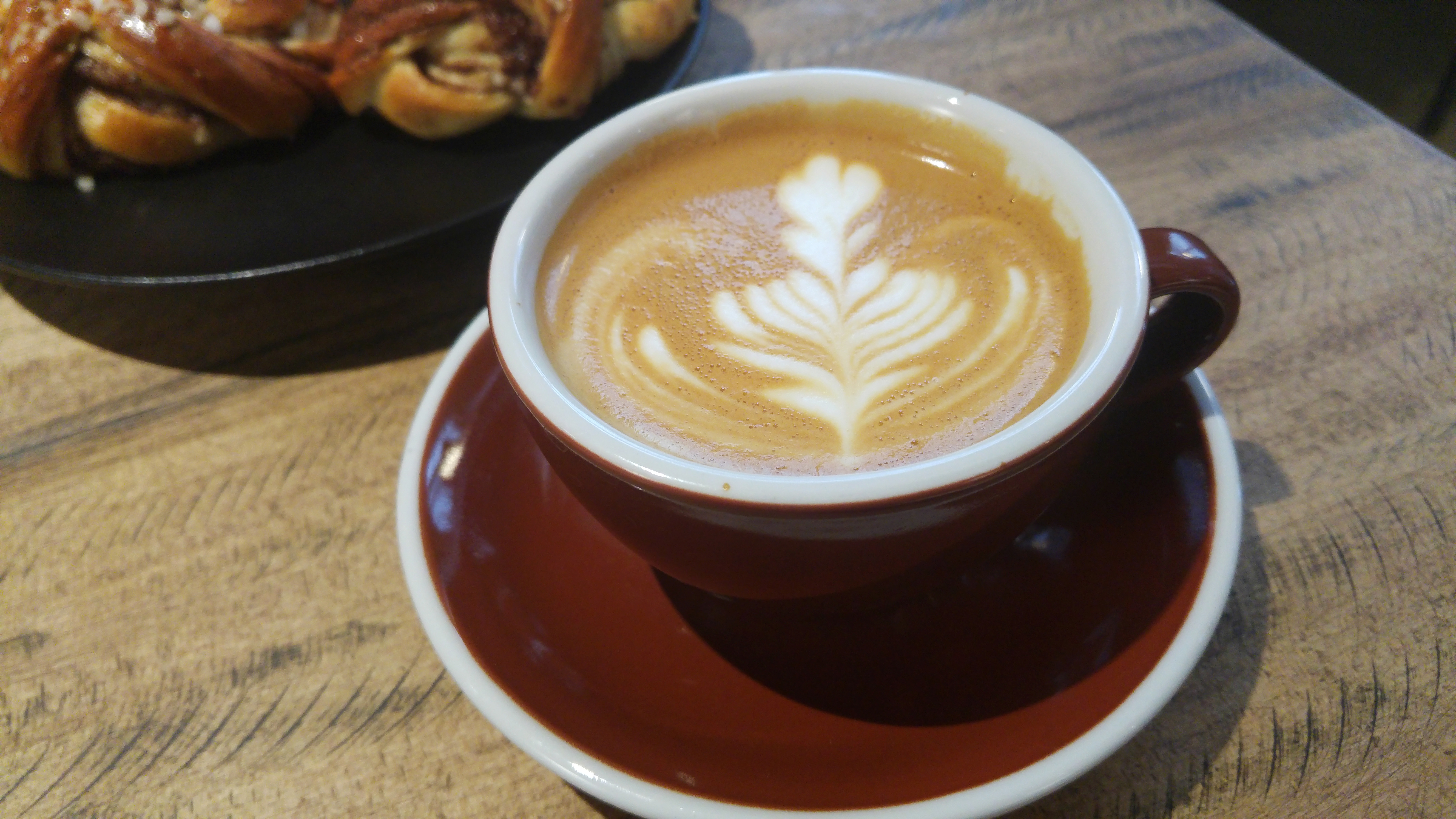 Цены чуть кусачие для местного гостя: эспрессо и маккиато 2.50 евро, flat white и капучино 3 евро, латте и V60 3.50 за чашку. Булочка обошлась в 2 евро – баловство не на каждый день, зато такой выпечки не видела еще в центре города. Тем более, что за приготовлением можно понаблюдать на расстоянии вытянутой руки.