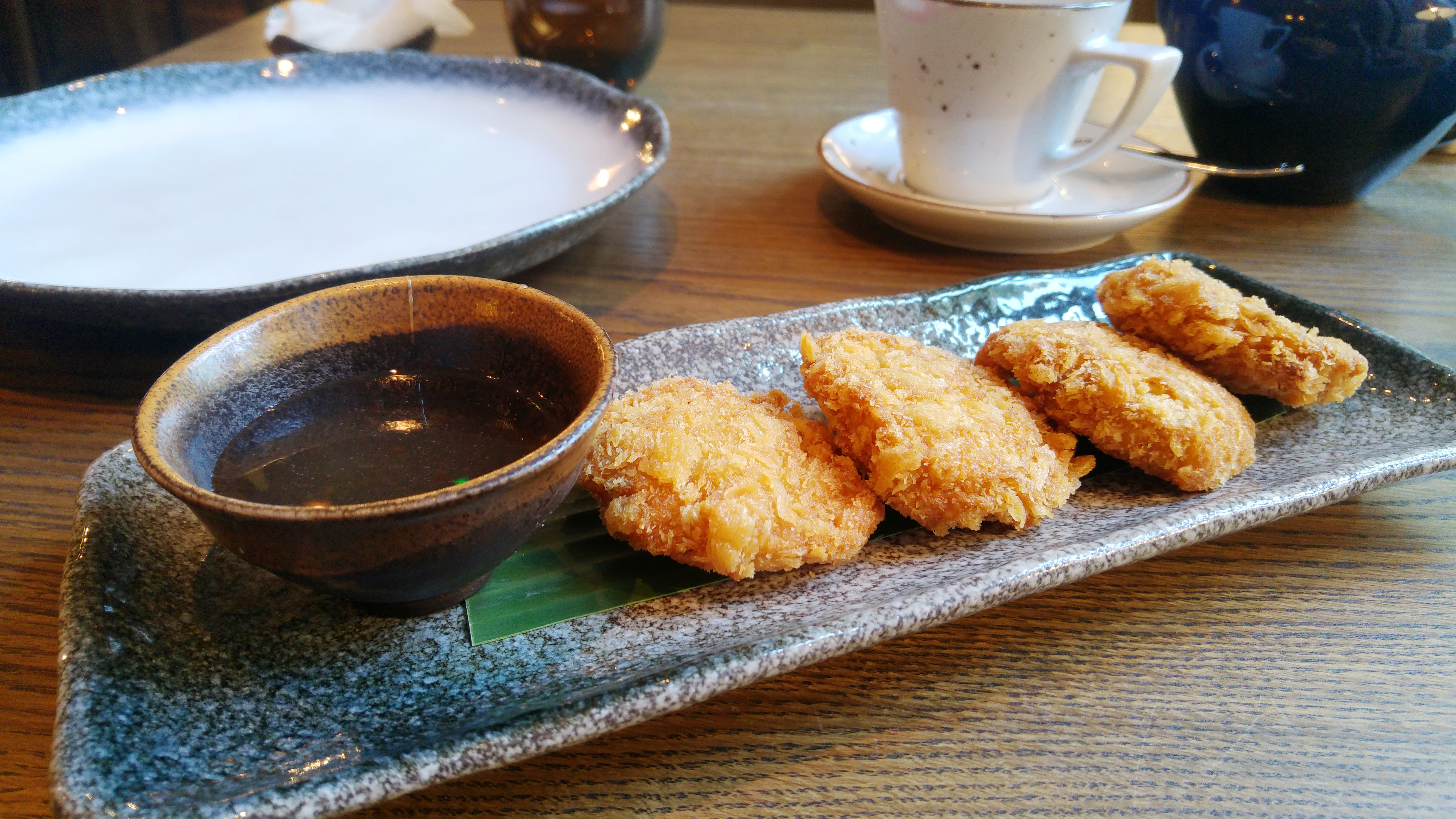 Советую данный старт – TOD MAN GOONG – пирожки их маринованных креветок, сливовый соус. Необычно тонкая панировка темпура, а внутри еще дымящаяся солоноватая начинка. Даже интереснее японского варианта с целой креветкой и в более весомой жареной броне. Сладкий соус можно есть даже ложкой, если б дали. Супер!