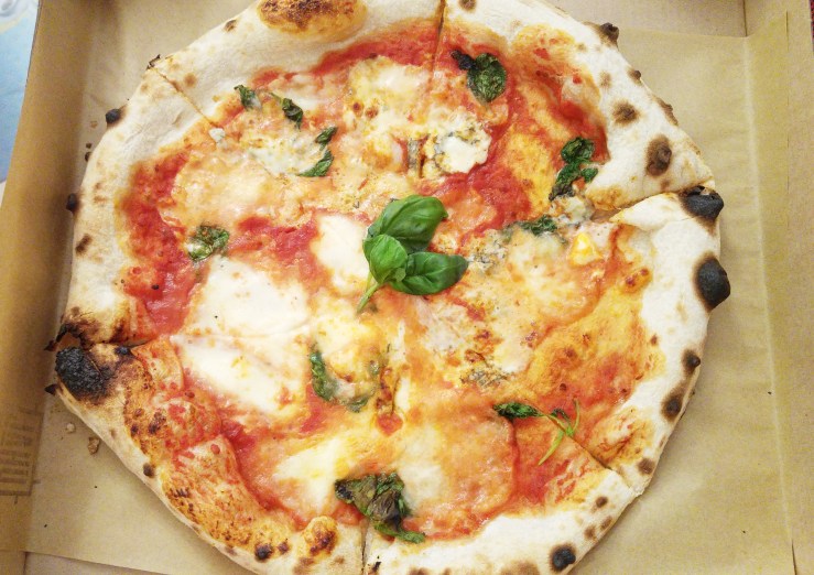 Тестовое блюдо третье – пицца Quattro Formaggi (7.50 евро) – томатный соус, моцарелла, козий сыр, сыр горгонзола, сыр пармезан, оливковое масло. Тесто тягучее и легкое, не сильно пышное, с тонким дном. Начинки на 1/3 пиццы положили, горгонзолы – как украли, а пармезана вообще не прочувствовала. Остальных видов сыра – и на глаз, и на зуб хоть удалось поймать. Есть над чем еще работать заведению.