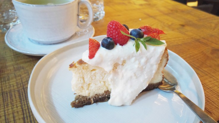 Baked cake with ricotta, berries, with yogurt cream – an enormous piece with delicious sauce. Sauce even resembled more ricotta than yogurt. Fresh berries, cheesecake style – all the rest is slightly duller. Tasty, I don’t argue, but the following dessert is much more interesting.